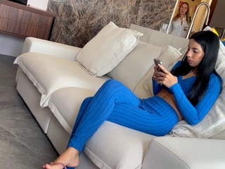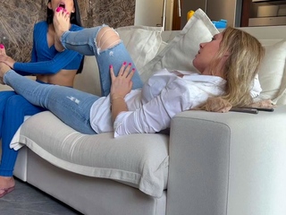 Hot brunette foot fetish play