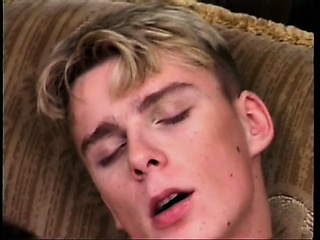 Horny young stud jerks his own dick to orgasm while his buddy fucks his ass