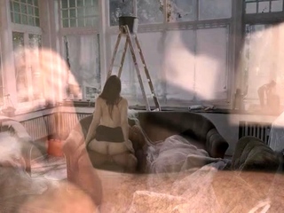 Horny brunette babe in a hardcore orgy