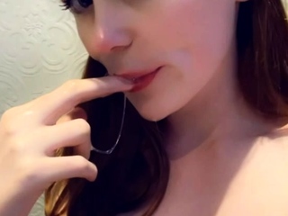 Chubby redhead plays solo on the couch