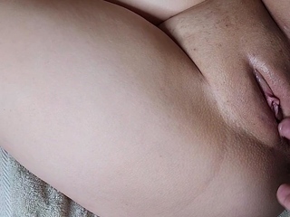 Pink labia close up of naive brunette