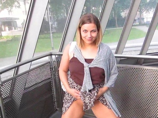 Busty blonde amateur fucked in public restroom